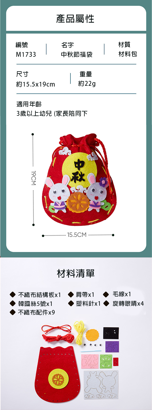 尺寸: 15.5 x 19CM